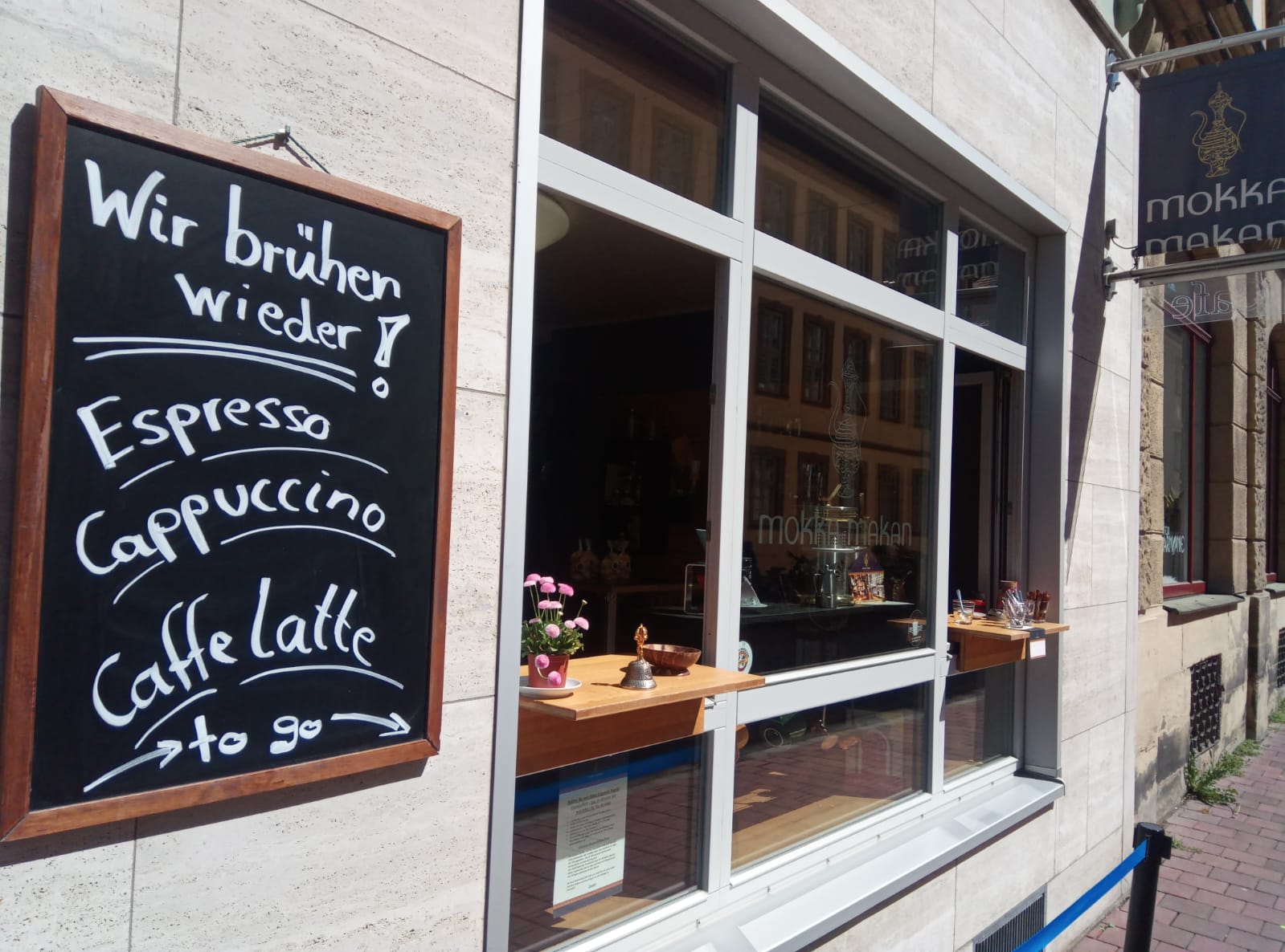 Das mokka makan hat wieder regelmäßig mit Ausschank zum Mitnehmen geöffnet: Ab heute, 22. April täglich (außer Sonn- und Feiertags) von 10 bis 16 Uhr.