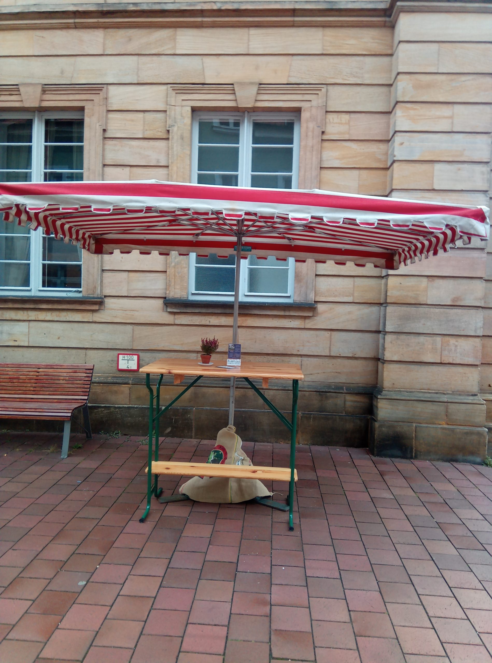 Wir machen eine kurze Pause vom Freitag, 2.10. bis einschließlich Montag, 5.10.2020, daher wird unserer Schirm bis dahin drinnen bleiben.